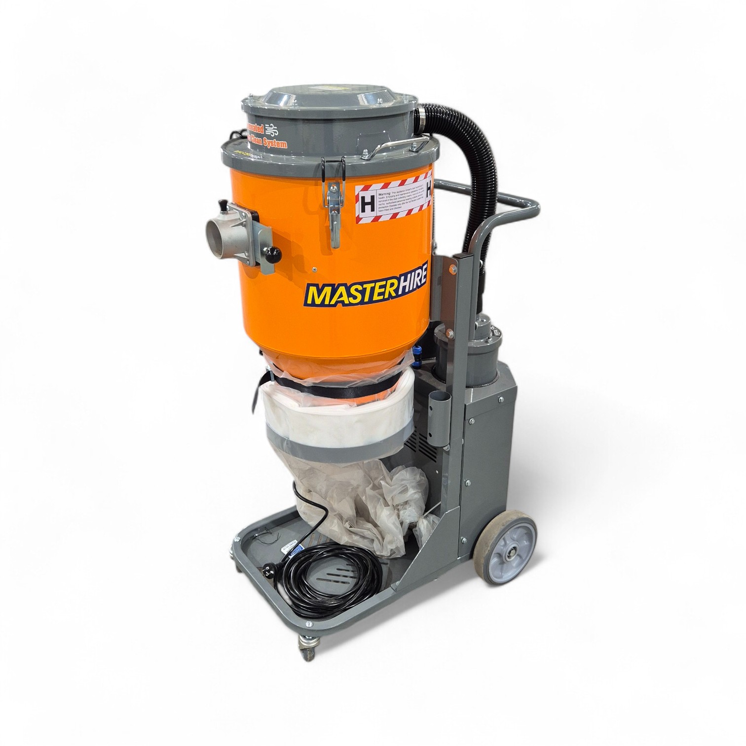 Master Hire H-Class dust extractors are powerful, industrial-grade units designed to safely capture fine hazardous dust from concrete cutting, grinding, and surface preparation. Equipped with an automatic H-Class HEPA filtration system, this machine helps maximally reduce airborne contaminants and maintain a cleaner, safer job site.