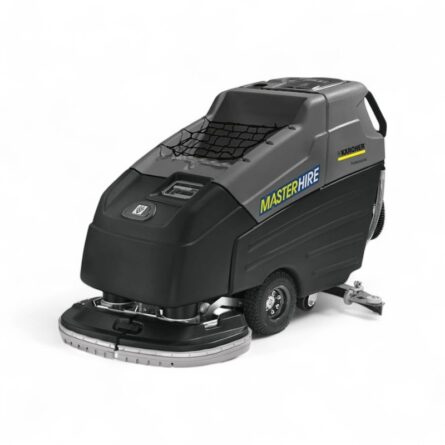 Master Hire’s walk behind twin head floor scrubbers are suitable for cleaning or polishing level floor surfaces. The units are self-propelled, battery operated and are fitted with a 95L water reservoir tank. Water is released as the machine moves along the ground to help lift the dirt as it vacuums it up behind the rotary scrubber. It has multiple speed settings to assist in getting a balance between the water being released and the vacuum collecting the dirty water as you move and has a Practical working capacity of 2,675 m2/h.