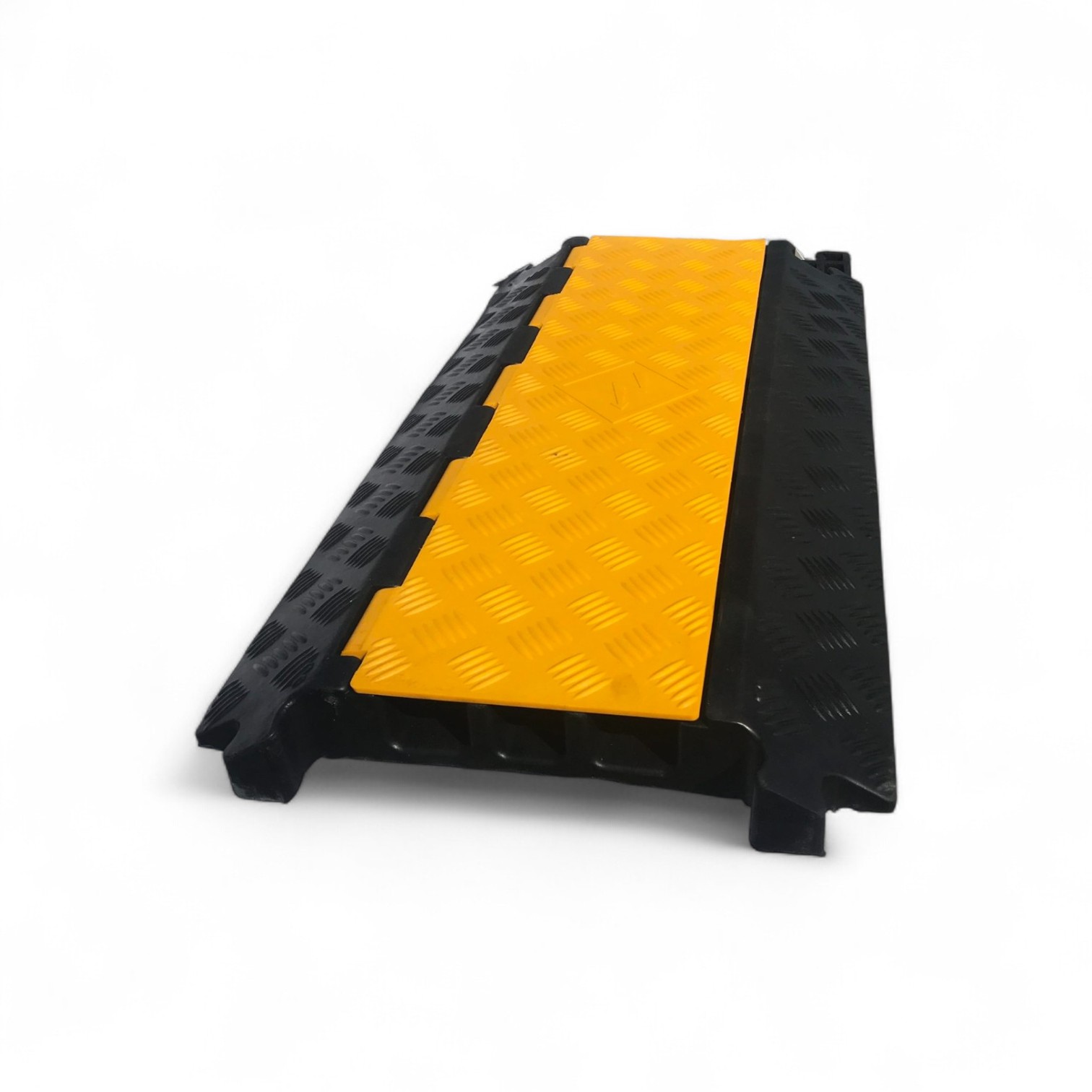 Master Hire cable protectors are ideal for protecting electrical leads and generator power cables in high traffic areas. These durable rubber and plastic cable protectors are rated to support weight of 5t per axle (not recommended for truck or forklift traffic). Each have three built in channels which are 60mm (W) x 40mm (H) x 900mm (L) (total width of 430mm per cover) fitted with a hardened plastic lid to ensure cables are kept off the ground and constantly protected. Due to the durable plastic cover on the top of the cable protector, installing and removing cables and electrical leads is very simple. Our cable protectors have interlocking modules that will keep them linked end to end and your cables secure.