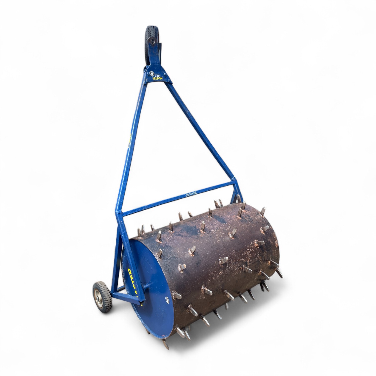 Master Hire towable spiked lawn rollers are used to aerate your soil by puncturing holes into the soil, allowing oxygen to better reach the roots of your grass. This towable spiked roller has a 255L water capacity – simply fill the spiked metal drum with water and you’re ready to go. These particular spiked rollers are heavy and large, requiring a tow bar equipped vehicle (ride-on lawnmower, tractor, quad bike, etc) to be used.